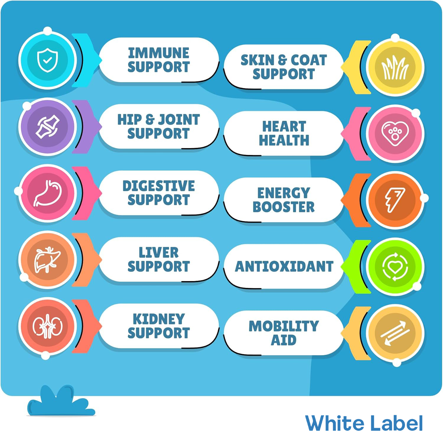 Skin and Coat - Our formula has Omega 3, Biotin, and a variety of vitamins that help your pet's skin and coat as well as providing hip and joint support.