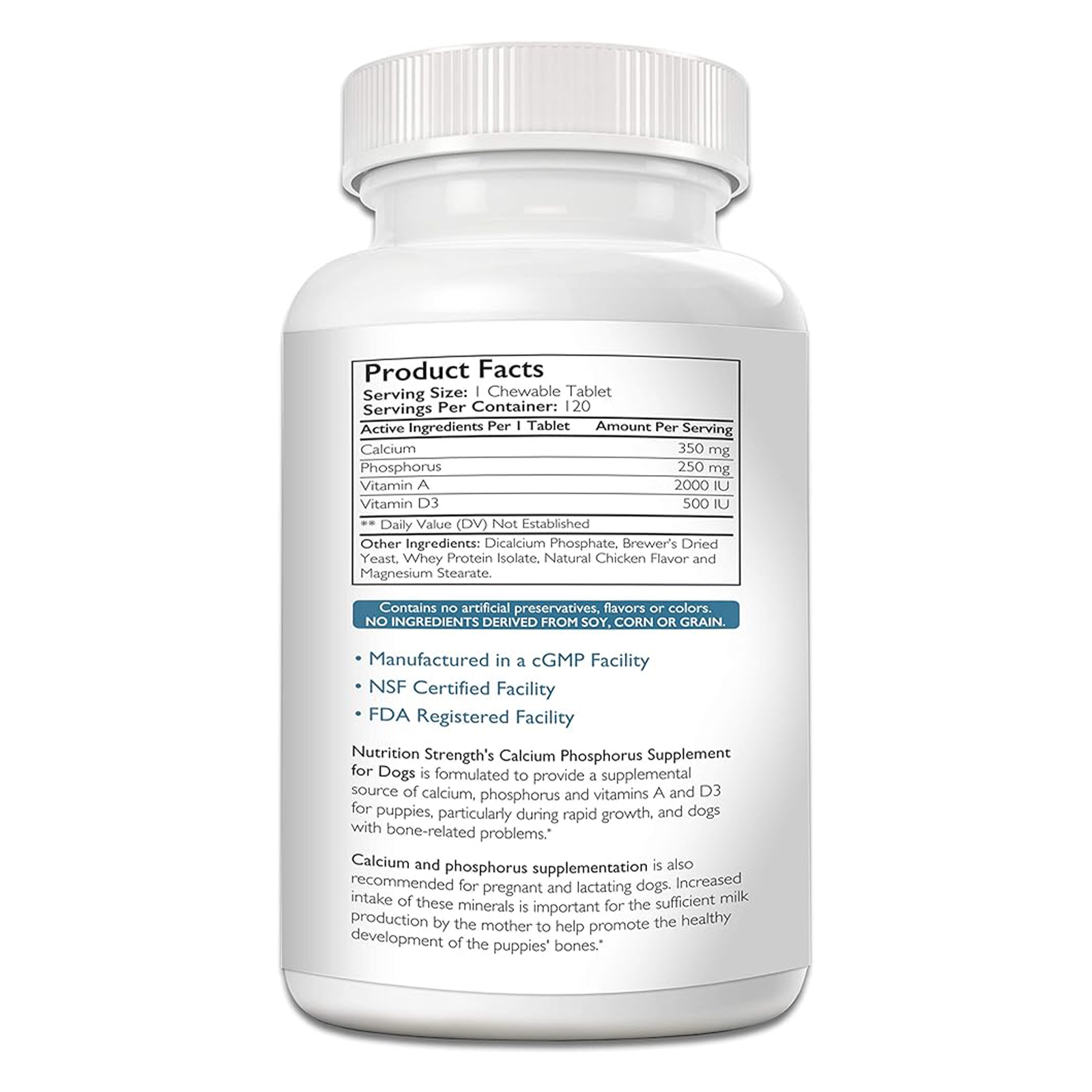 Calcium phosphorus for dogs supplement, formula for healthy dog bones, dog bone supplement is made with carefully selected, high quality ingredients; our premium calcium phosphorus tablets for dogs meet the strictest animal supplement manufacturing guidelines, to guarantee your pet's safety, and are grain free and gluten free